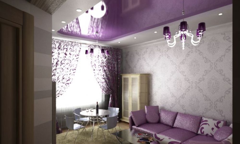 Сиреневые натяжные потолки